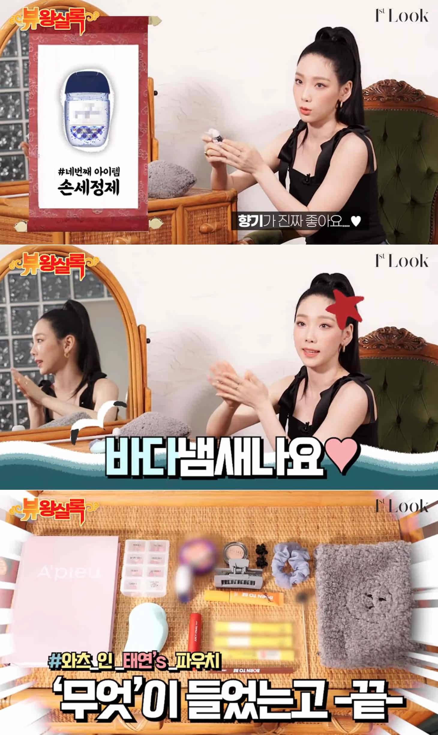 퍼스트룩 유튜브 채널에 '"제가 여러분께 쏠게요!" 뷰티왕 태연(TAEYEON)의 홈 케어 뷰티팁과 파우치 속 리얼 아이템은? | 1stLook 뷰왕실록'이란 제목의 영상이 지난 8월 올라왔다.