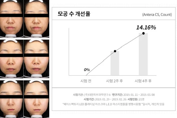플래티넘 마스크는 제품의 효과를 한 달간의 인체 적용시험 결과를 통해 검증했다. 마스크를 한 달간 사용한 실험자들은 즉각적 피부톤 개선, 안면부(눈꼬리)리프팅 개선, 모공 수 개선, 탄력 개선 등의 효과를 보았다.