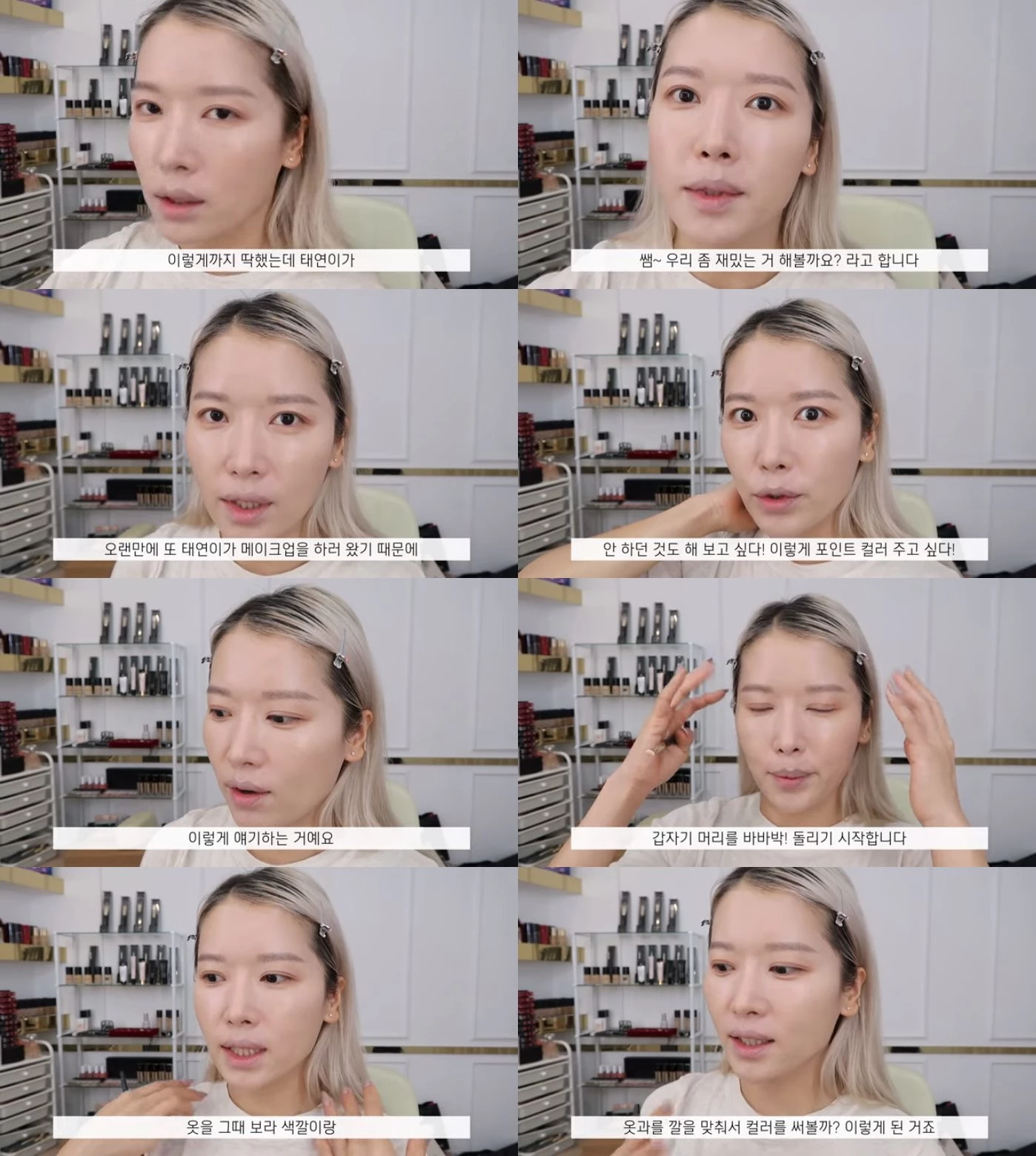 그는 "오늘은 여러분들이 정말 많이 문의하셨던 태연이의 인스타그램 속 메이크업"이라며 "싱크로율보다는 여러분들이 '눈 앞에 펄이 뭐냐' 등 많이 궁금해하셔서 그런 궁금증을 해결하기 위해 준비했다"고 설명했다.