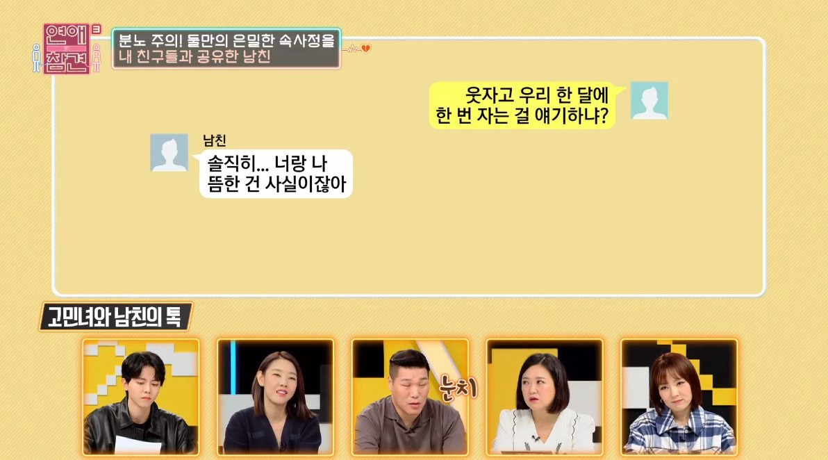 남친은 성생활 관련 고민도 친구들에게 털어놓으며 여친을 경악시켰다.