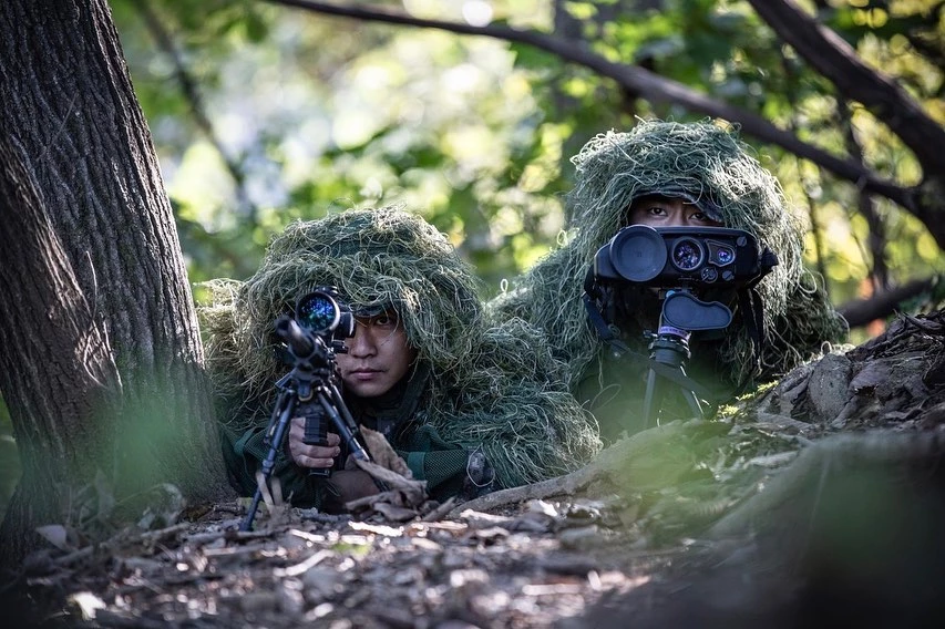 사진 속 군인들은 위장크림을 바르고 위장복(길리 수트)을 입은 채 훈련에 매진하고 있다. 혼자 찍힌 사진은 없다. 지휘관, 동기들과 함께 있는 모습이다.