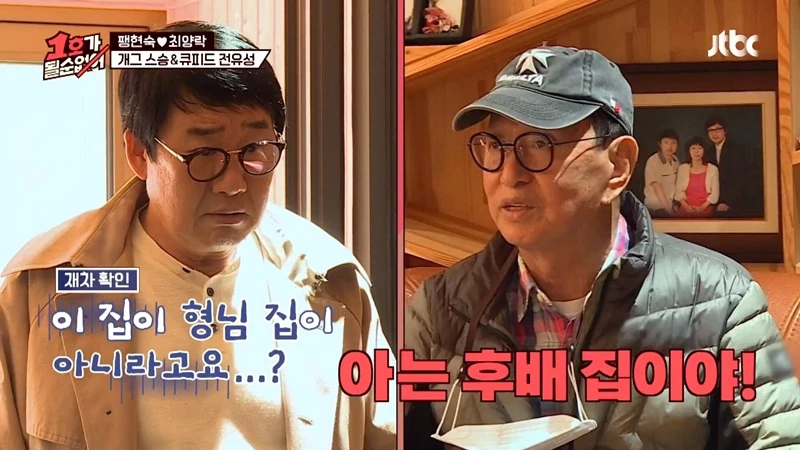 하지만 이내 깜짝 놀랄 반전이 공개됐다. 서재를 구경하던 최양락은 액자 속에 있는 낯선 가족의 사진을 발견했다. 최양락이 누군지 묻자 전유성은 집과 관련된 놀라운 사실을 밝히며 출연진에게 충격을 줬다.