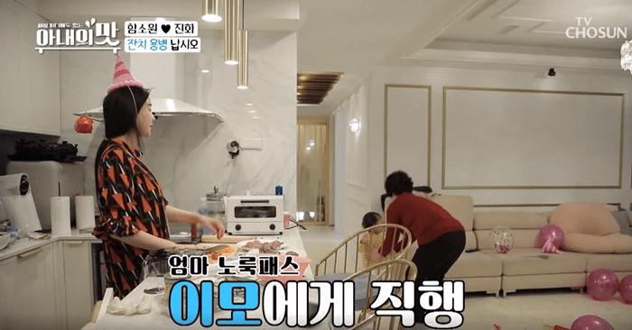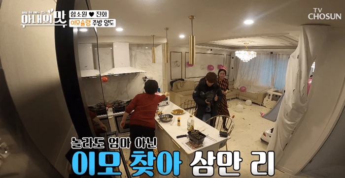 시터이모는 "도움이 안 된다"라며 함소원을 주방에서 밀쳐냈고 바로 '프로' 다운 음식 실력을 보이며 두 돌 파티를 위해 잡채·미역국·주먹밥 등을 빠르게 준비했다.