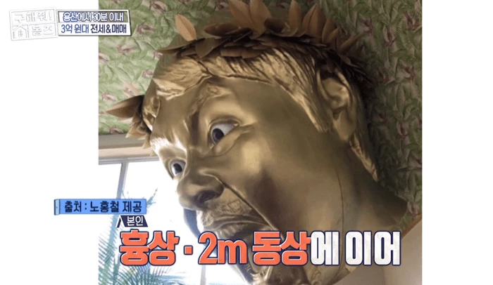 그는 본인의 집을 공개하며 "화장실에도 거울이 있다"라면서도 "저는 저를 너무 소중하게 생각하기 때문에 흉상 하나, 2m가 넘는 동상 하나 그리고 저의 신당이 하나가 있다"라고 소개했다.