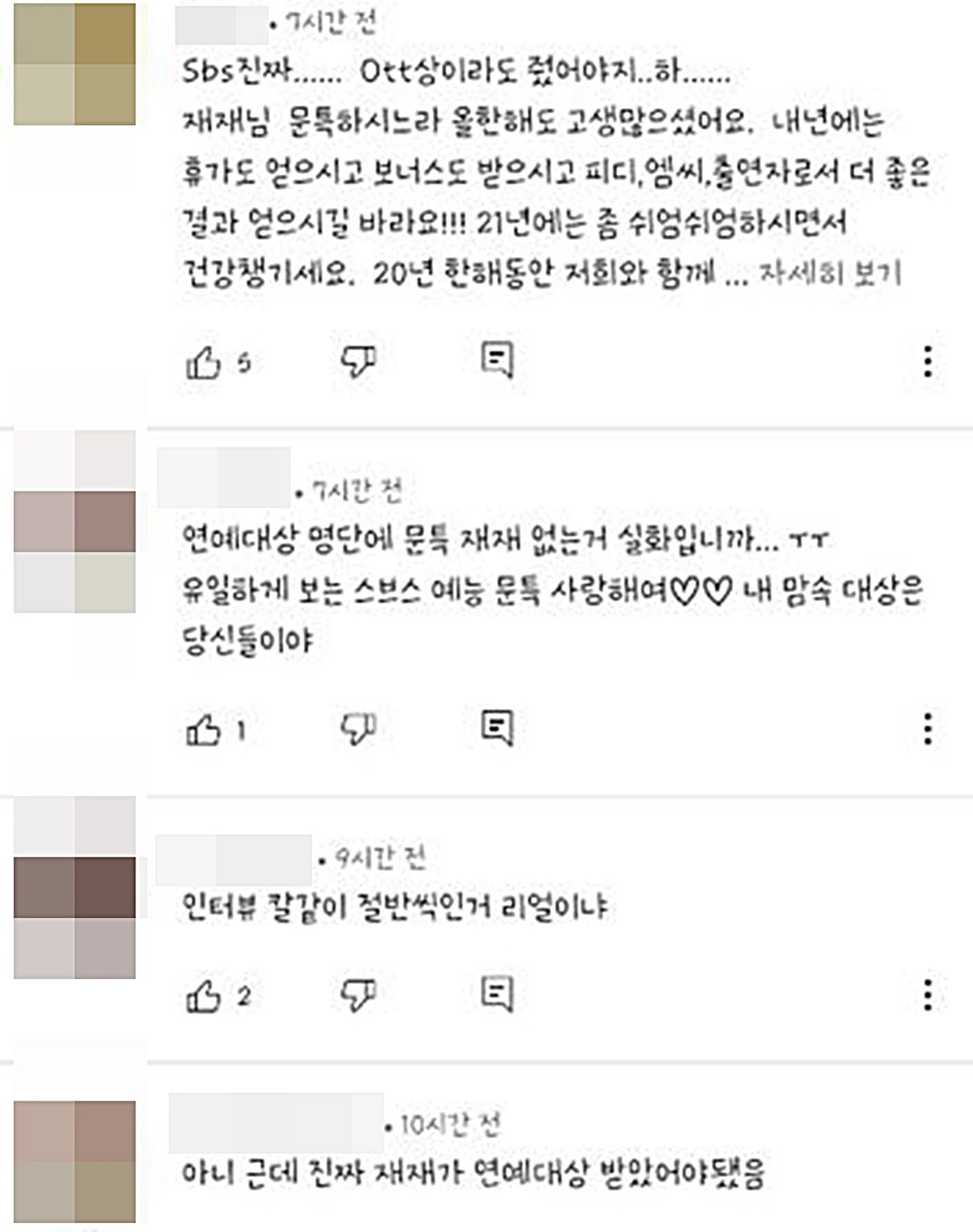 올 한 해 성공한 유튜브 채널 중 하나이기에 재재의 일부 팬들은 그가 아무런 상도 받지 못한 데 관해 실망감을 표출했다.