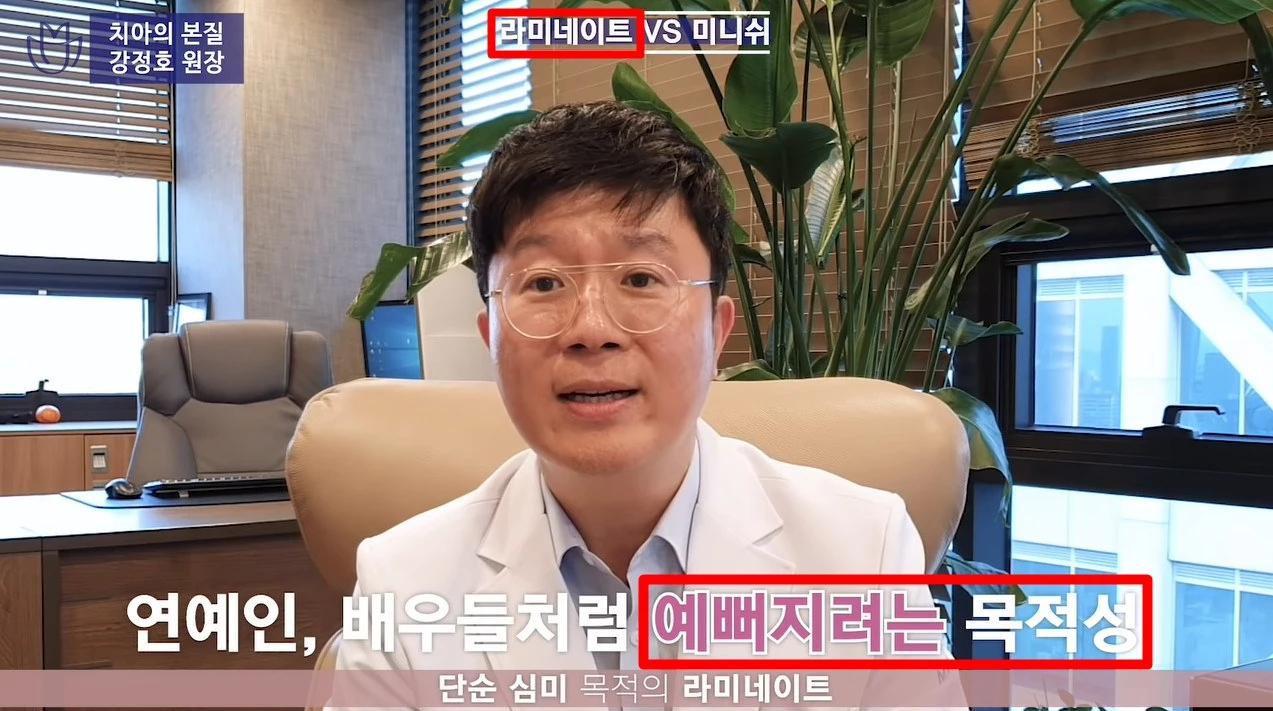 강 전문의은 '라미네이트' 시술과 '미니쉬'를 혼동하는 사람이 많지만, 라미네이트와 미니쉬는 목적성에서 큰 차이를 보인다고 설명했다.