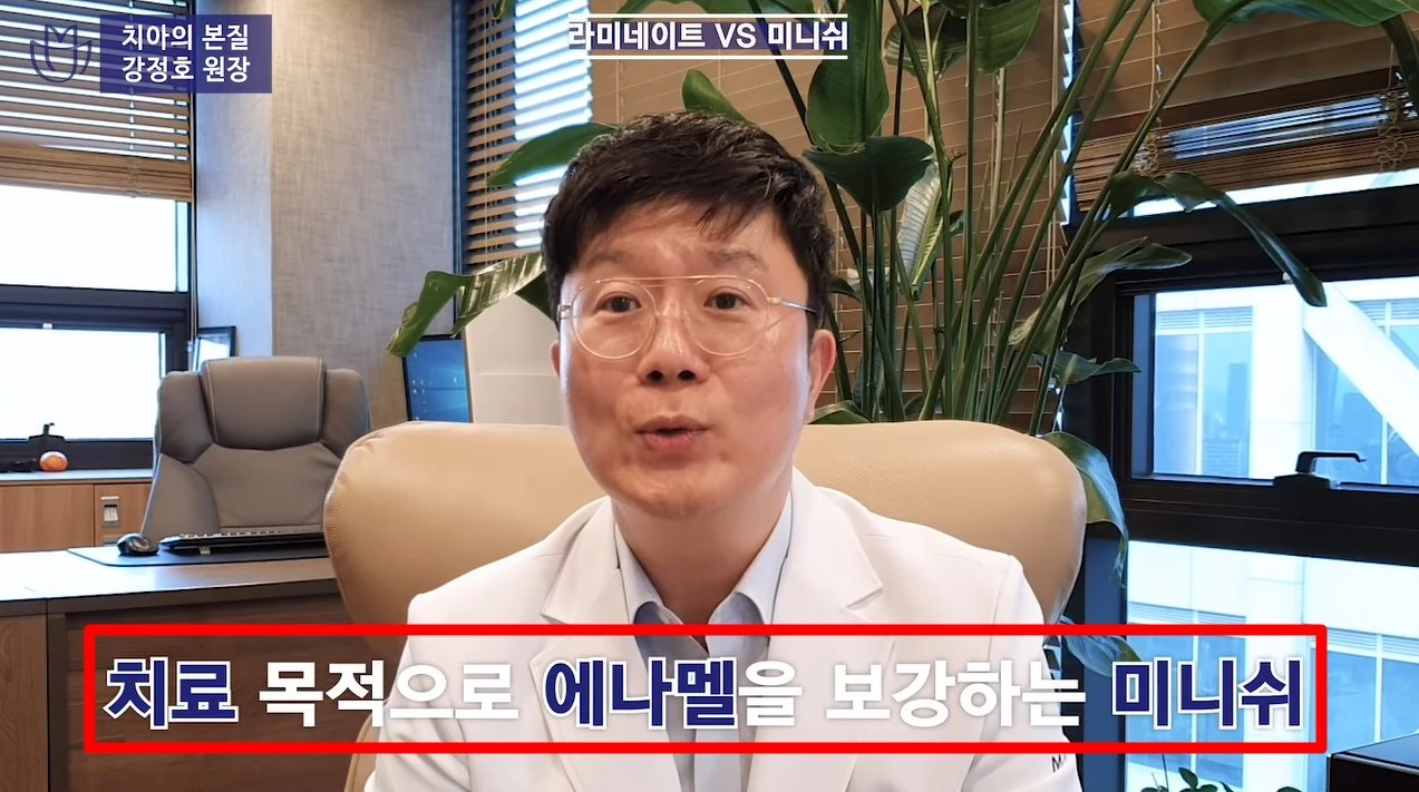유튜브 채널 '치아의 본질'을 운영 중인 강정호 치과전문의 설명에 따르면 '미니쉬'란 손상된 치아를 불필요한 삭제 없이 본연의 형태와 기능을 살려 건강한 치아를 복원하는 치료법이다.