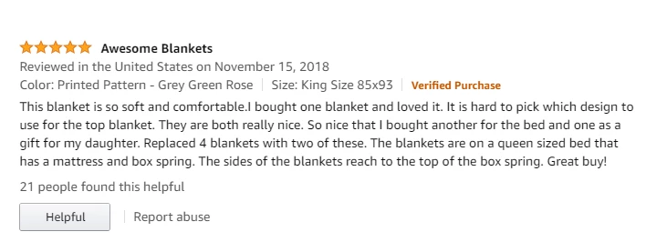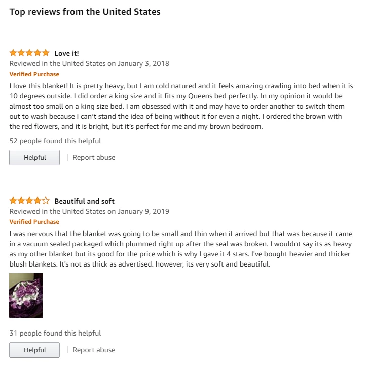 실제로 남긴 구매 후기를 살펴봐도 호평 일색이다. 이들은 리뷰에 “(제품이) 사랑스럽다” “매우 아름답고 부드럽다” “매우 두껍고 포근하다” “따뜻하고 묵직한 게 겨울에 완벽하다” “놀라운 이불이다” 등 호의적인 구매평을 남겼다.