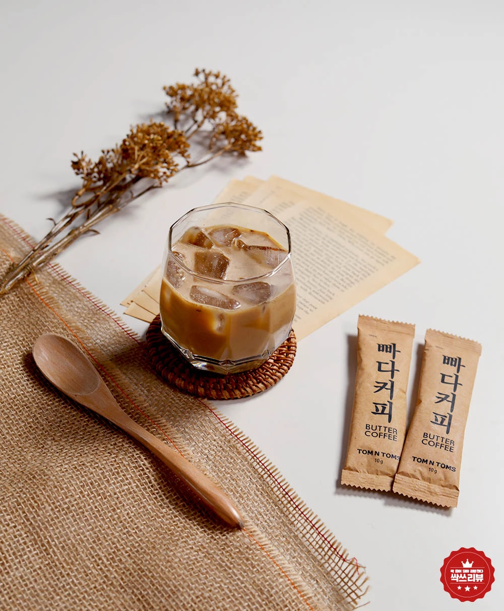탐앤탐스 카페에서도 손쉽게 살 수 있는 '빠다커피'는 가루 타입이다. 1포씩 뜯어 뜨거운 물 100ml를 섞어 먹으면 된다. 뜨거운 물을 부으면 갓 내린 듯 고소한 커피향이 올라와 기분까지 좋다. 맛은 다른 제품들에 비해 버터 풍미가 가장 잘 느껴졌다. 여기에 살짝 단맛이 돌아 그때 그 시절 옛 다방커피를 먹는 기분이 들기도 한다. 1박스(7개, 개당 10g)에 6000원.