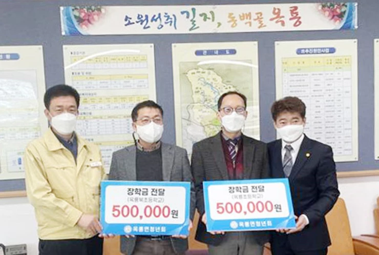 옥룡면 청년회는 지난 1월 29일 오전 10시 옥룡면장실에서 이용신 옥룡면장, 문정식 옥룡초등학교장, 김의성 옥룡북초등학교장이 참석한 가운데 옥룡초등학교와 옥룡북초등학교에 장학금 100만 원을 전달했다.