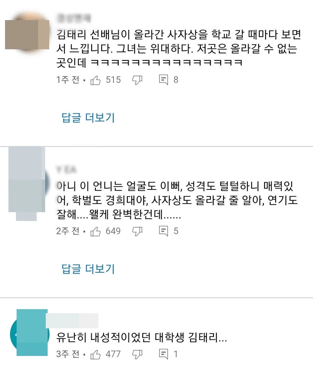 김태리는 지난 1월 네이버 VLIVE를 진행했다. Q&A를 진행하던 그는 "경희대 사자상 올라간 기분 어때요?"라는 질문을 받았다.