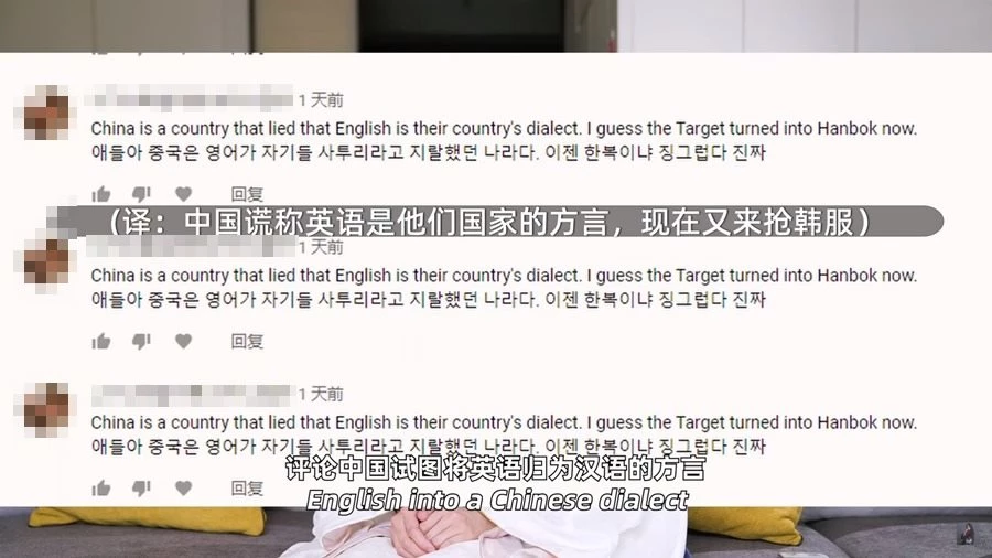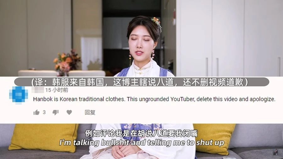 시인은 지난 11월 올렸던 영상을 언급하면서 "영상을 올리고 나서 한국 네티즌들로부터 비난을 받았다. 한국 네티즌들은 중국 문화를 공격하거나 중국이 한국의 문화를 훔치려고 한다는 댓글을 남겼다"라고 밝혔다.