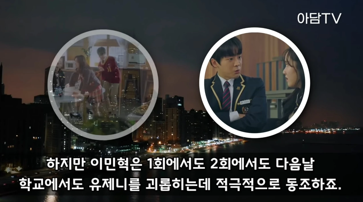 그러면서 '"펜트하우스 구조를 잘 알고 있는 사람은 또 누가 있을까?' 생각해 보니 '이민혁'(이하 이태빈 분)밖에 없더라"며 "알다시피 이날 진분홍이 만들었던 간식은 모두 유제니(이하 진지희 분)를 괴롭히기 위한 것이었고, 이민혁은 유제니와 절친이었지만 1회에서도 2회에서도 학교에서 유제니를 괴롭히는 데 적극적으로 동조한다"고 말했다.