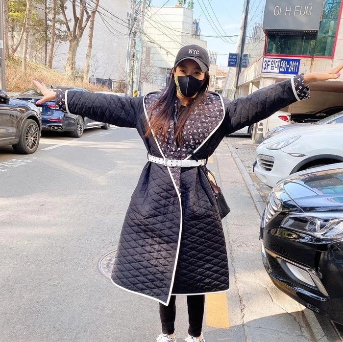 사진 속 김희선은 일명 '깔깔이'로 불리는 퀄팅 소재의 외투를 걸치고 있다. 안감에는 루이비통 시그니처 홀로그램이 인쇄돼 한눈에 봐도 고급스러워 보인다.