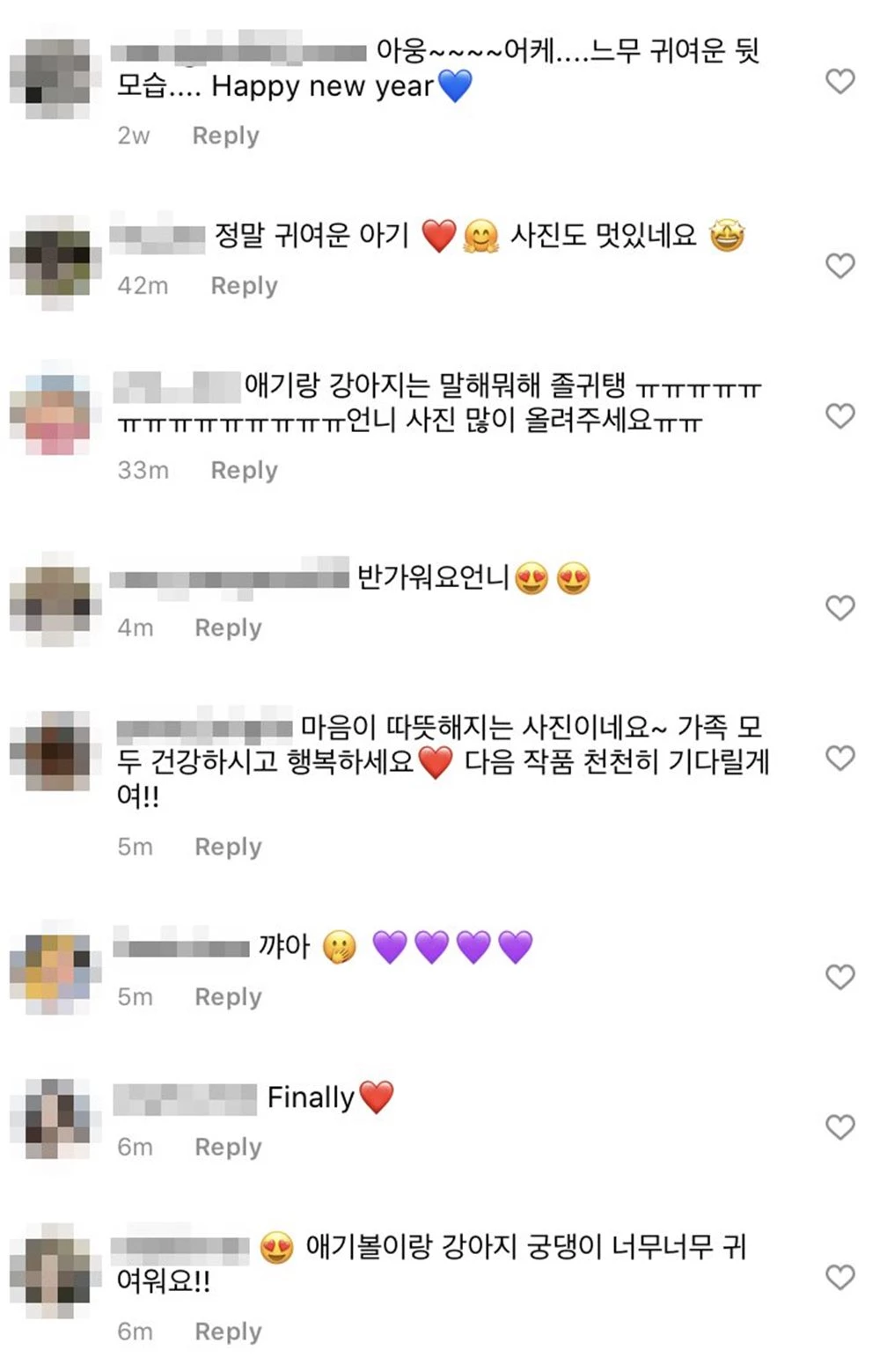 네티즌들도 "너무 귀여운 뒷모습", "정말 귀여운 아기. 사진도 멋있네요", "아기랑 강아지는 말해 뭐해 졸귀탱. 언니 사진 많이 올려주세요", "반가워요. 언니", "마음이 따뜻해지는 사진이네요~ 가족 모두 건강하시고 행복하세요. 다음 작품 천천히 기다릴게요", "아기 볼이랑 강아지 엉덩이 너무너무 귀여워요" 등의 댓글을 남기며 최지우를 환영했다.