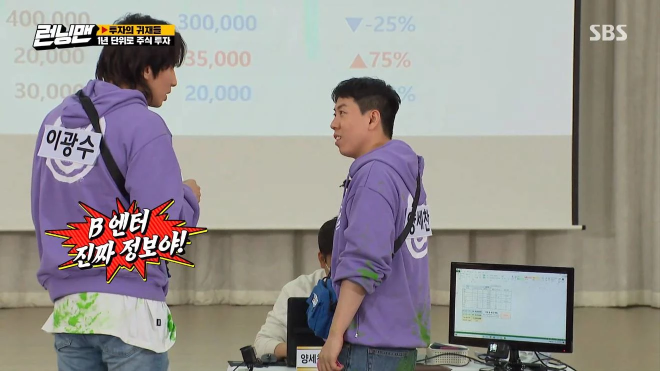 이날 양세찬은 7,500만 원의 수익을 거뒀다. 유재석은 "대단하다. 얘 뭐냐"며 감탄했다. 멤버들은 서로 정보를 얻기 위해 고군분투했다. 이광수는 "B엔터 정보가 있다"며 양세찬에게 접근했다. 양세찬은 "죄송한데 10만 원 줄 테니 꺼져라"라며 이광수를 무시했다.