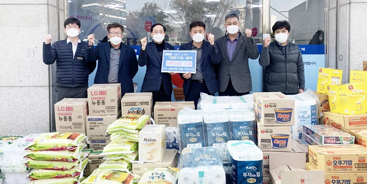 특히 관내에서 시공 중인 아파트 건설업체(대광건영, 보광건설, 한신공영, 한화건설, 혜림건설)도 장기화된 코로나 19로 힘든 순천시민에게 조금이나마 보탬이 되고자 5백만원 상당의 쌀, 라면, 세제 등 생필품 기증에 적극 동참했다.