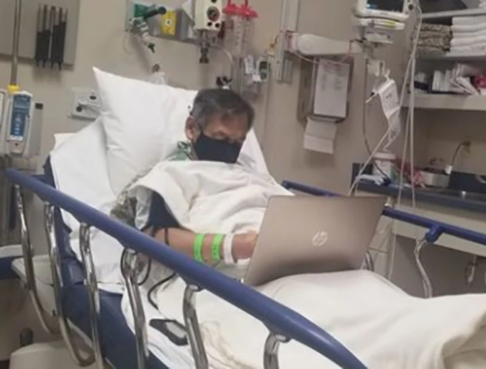 최근 '산드라 베네가스(Sandra A. Venegas)'라는 이름을 가진 한 여성이 자신의 페이스북에 사진 한 장을 공유했다. 이 사진은 약 9만 회의 '공유 수'와 20만 건의 '좋아요 수'를 기록하며 눈길을 끌었다. 사진 속에는 병실에 앉아 노트북을 바라보고 있는 한 남성의 모습이 담겨 있다.