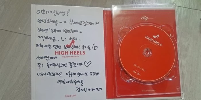 A씨는 앨범 내부도 공개했다. 앨범 안쪽에는 "이휘재 선배님! 안녕하세요. 브레이브걸스입니다!"라고 시작하는 편지가 적혀 있다.