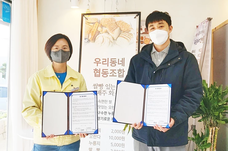 이번 협약은 광양노인복지관 내 노인돌봄센터에서 추천한 어르신들에게, 협동조합에서 생산한 빵과 과자 등을 지속적으로 지원한다는 내용이다.