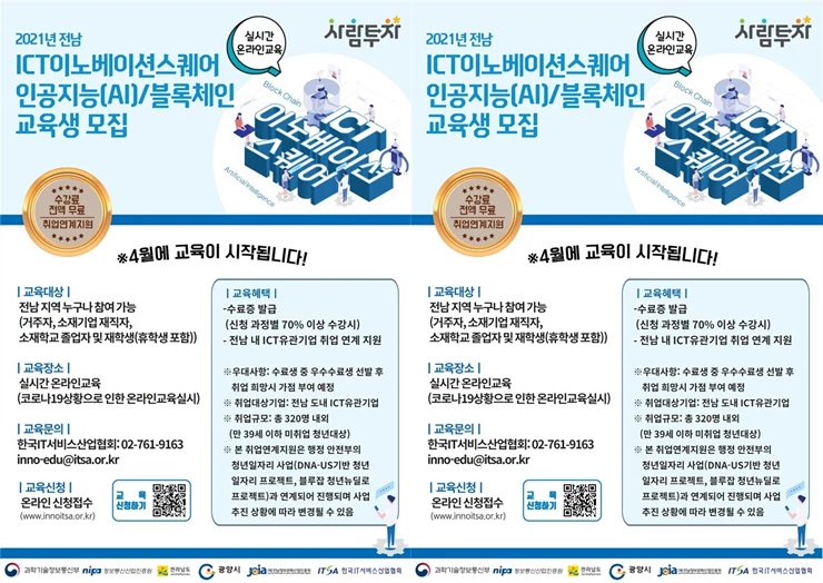 자세한 사항은 전남 ICT이노베이션스퀘어 교육업체(☎02-761-9163)로 문의하면 된다.