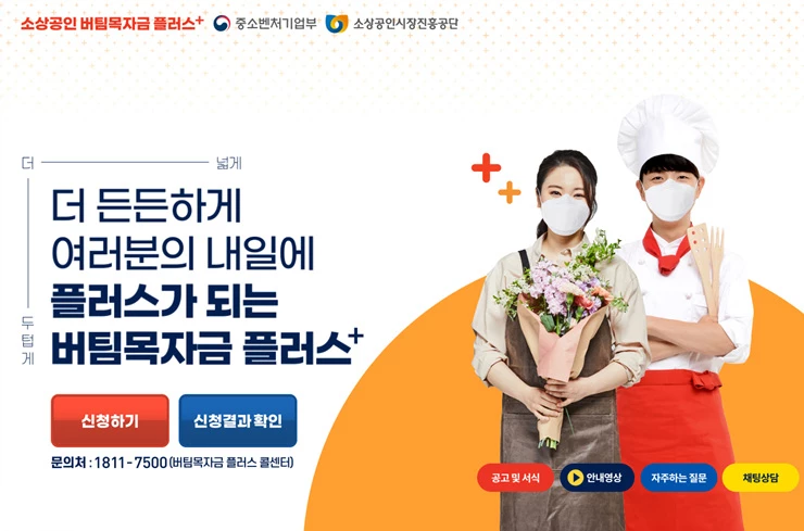지원금 신청은 포털사이트에서 ‘소상공인 버팀목자금 플러스’를 검색하거나 주소창에 ‘버팀목자금플러스.kr’를 입력해 소상공인 버팀목자금 플러스 누리집에서 하면 된다.