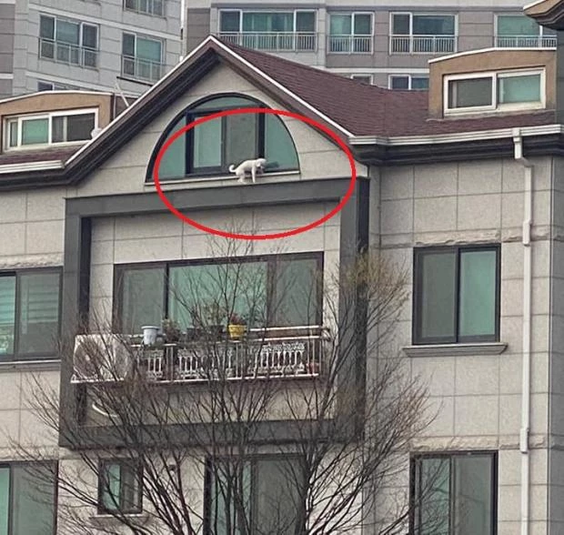 반려견이 빌라 옥탑방 난간에 아슬아슬하게 걸터앉은 이유