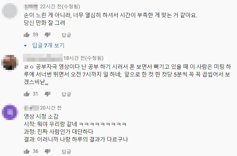 영상을 본 시청자들은 "진짜 사람인가, 대단하다", "너무 열심해 해서 시간이 부족한 게 맞는 것 같다", "이 형은 노력이나 열정이 성공할 수밖에 없다", "존경스럽다", "진짜 하루를 꽉꽉 채워 사네", "성공한 사람은 다르다는 걸 느끼고 간다", "이렇게 사니까 네이버 웹툰 탑이지", "어떻게 저렇게 살지?" 등 반응을 보였다.