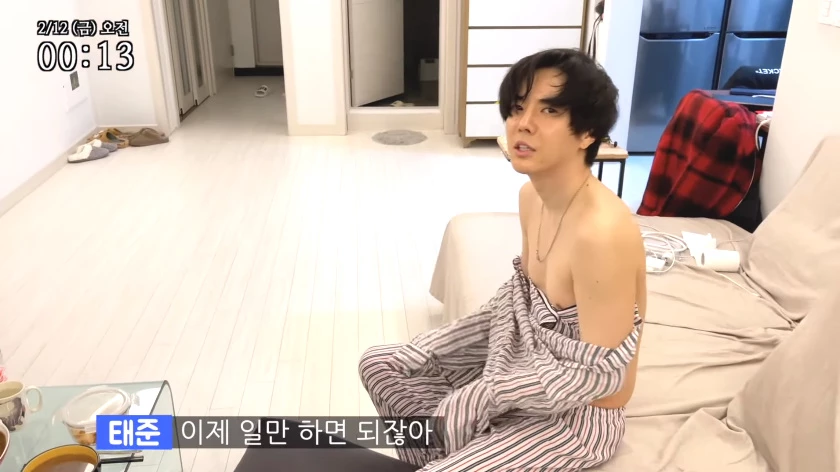지난 2월 촬영돼 이번에 공개된 영상 속에서 PD는 박태준 집을 직접 방문했다. 오후 3시 20분이 돼서야 방문 밖으로 나온 박태준은 "늦게 잤냐"는 PD 질문에 "맨날(만날) 낮밤 바뀌어 가지고..."라고 답했다.