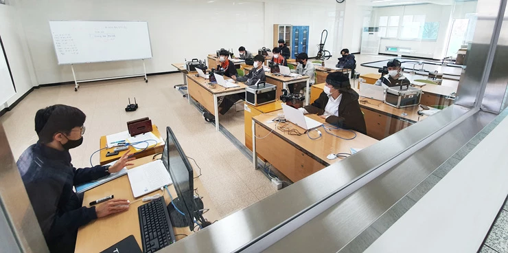 올해 공동실습소의 공동교육과정은 4차 산업 기술 중 ▲IT활용 자동화 가공실무 ▲인공지능 IOT 플랫폼 기초분야 등 크게 2개 분야로 구성됐다. ‘IT활용 자동화 가공실무’에서는 ▲CNC가공 & 레이저가공 ▲3차원설계 & 3D프린터 ▲협업 로봇에 관한 교과를 학습한다. 또 ‘인공지능 IOT 플랫폼 기초분야’에서는 ▲인공지능 자율 주행차 ▲사물 인터넷 ▲모터제어 교과 학습을 시행한다.