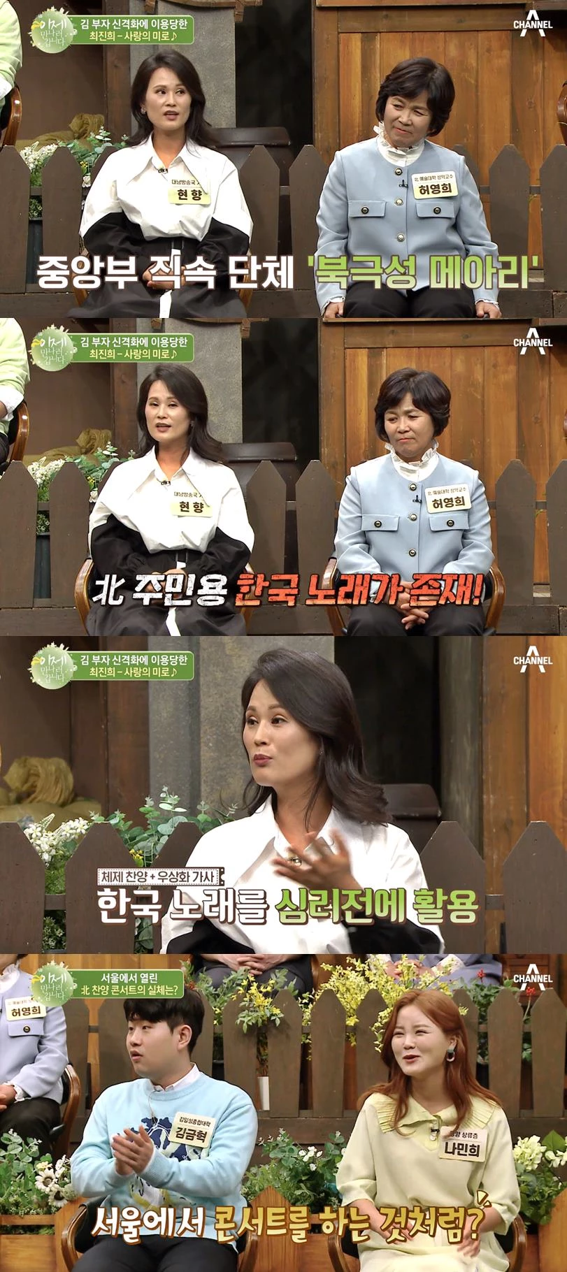 북한 대남방송국 가수 출신 현향은 "중앙부 직속 단체인 '북극성 메아리'는 북한 주민들을 상대로 심리전을 펼치는 곳"이라고 운을 뗐다.