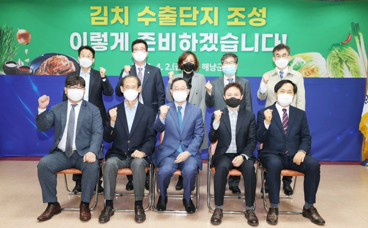 이를 바탕으로 지난 4월 2일에는 해남군청 상황실에서 전라남도와 한국농수산식품유통공사, 세계김치연구소, 전남창조경제혁신센터, 전남식품산업연구센터, ㈜대상, 화원농협 등 관계기관이 한자리에 모여 김치수출단지 조성을 위한 구체적 방안을 논의했다.