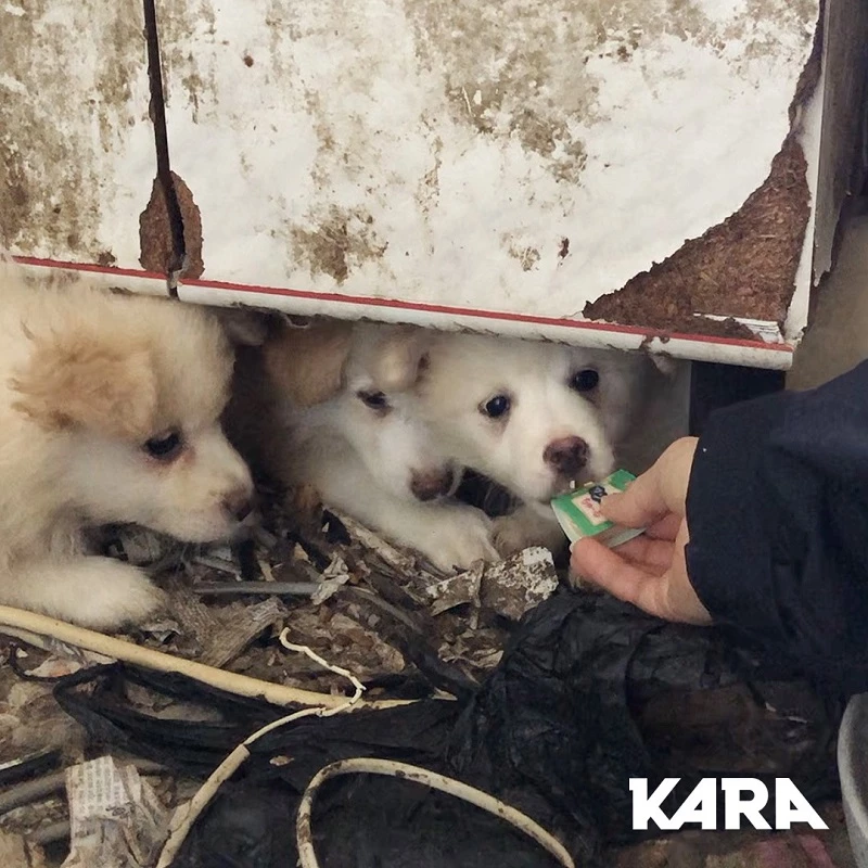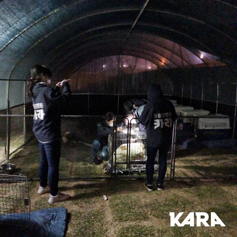 구조된 강아지들은 현재 카라가 긴급히 설치한 임시 하우스에 수용된 상태다. 카라는 당분간 구조된 강아지들의 질병 검사와 개체 정보 정리, 백신 접종 등에 매진할 계획이라며 돌봄 봉사와 후원을 요청했다.