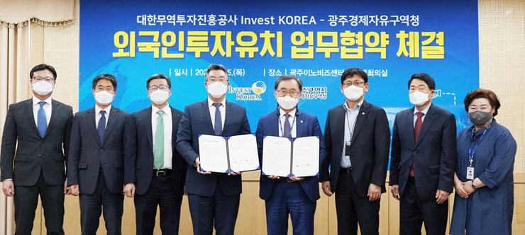 광주경제자유구역청은 15일 오후 광주이노비즈센터 대회의실에서 KOTRA 인베스트코리아와 외국인 투자유치를 위한 업무협약을 체결했다.
