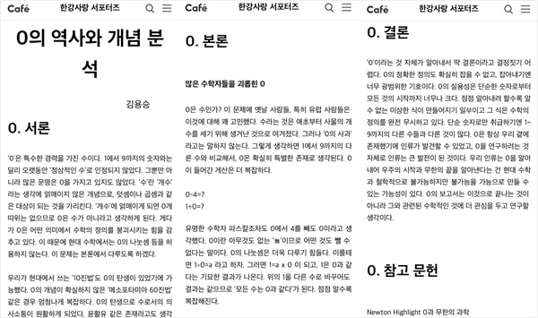 게시글에는 '한강사랑 서포터즈'라는 네이버 카페에서 '12 서포터즈 김용승'이라는 이름으로 활동하는 카페 이용자의 글들이 캡처돼있었다. 중학생이었던 용승이 작성한 것이었다. '0의 개념과 분석', 'End of the world', '지구 대기 파헤치기' 등의 제목으로 수학과 과학에 대한 지식이 정리돼 있었다.