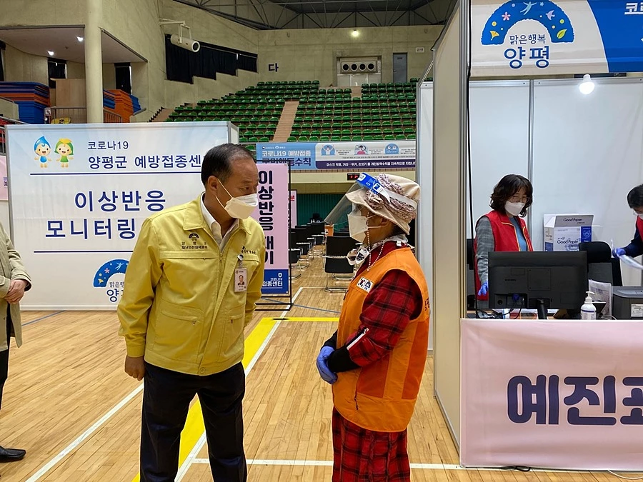 특히, 오늘 접종에는 백신 접종에 대한 불신을 종식시키고 백신의 안정성을 알리는 의미에서 대한노인회 양평군 지회 임원들이 첫 접종 대상자로 나서 주셨습니다, 솔선수범해 주신 김용녕 대한노인회 양평군 지회장을 비롯한 임원분들께 감사의 인사를 드립니다.