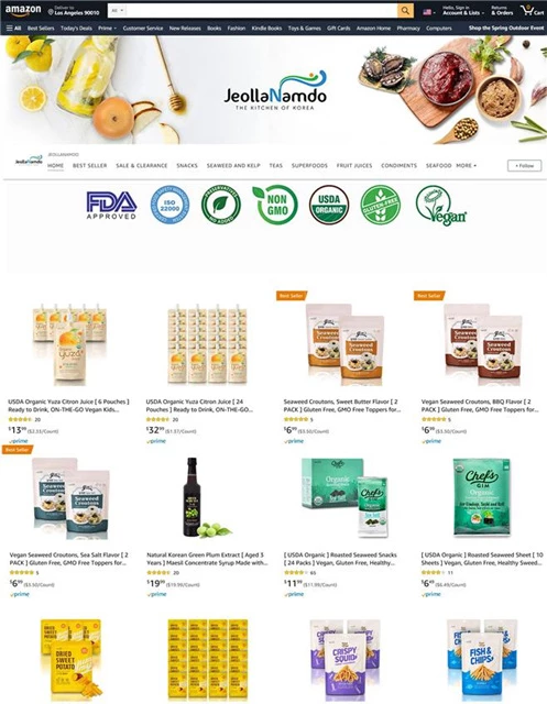 전라남도(도지사 김영록)가 미국 온라인시장인 아마존에 개설한 전남 브랜드관이 9개월 만에 10번째 수출 선적을 하는 등 한식(K-FOOD) 전문매장으로 자리를 잡아가고 있다.