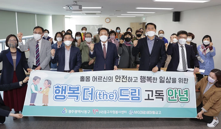 광주 동구(청장 임택)는 19일 창업지원센터에서 '행복 더(The) 드림 고독 안녕' 사업설명회를 개최했다. 이 사업은 65세 이상 홀몸계층 1:1 결연을 맺어 맞춤형 복지서비스를 제공하고 ‘띵동! 안녕꾸러미 나눔 사업으로 밑반찬, 과일 등 안녕세트를 정기 배달하는 사업이다./광주시 동구