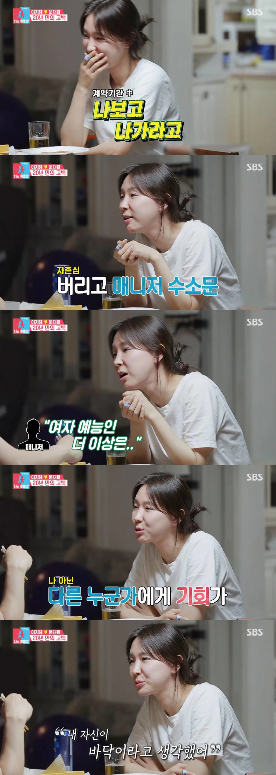 샵 해체 이후 소속사에서 계약 해지 통보를 받은 이지혜는 갈 데가 없어졌고, 알고 지내던 예능 관련 관계자들을 직접 찾아갔다. 하지만 '더 이상 여자 예능인은 영입할 생각이 없다'는 말을 들었다고 설명했다.