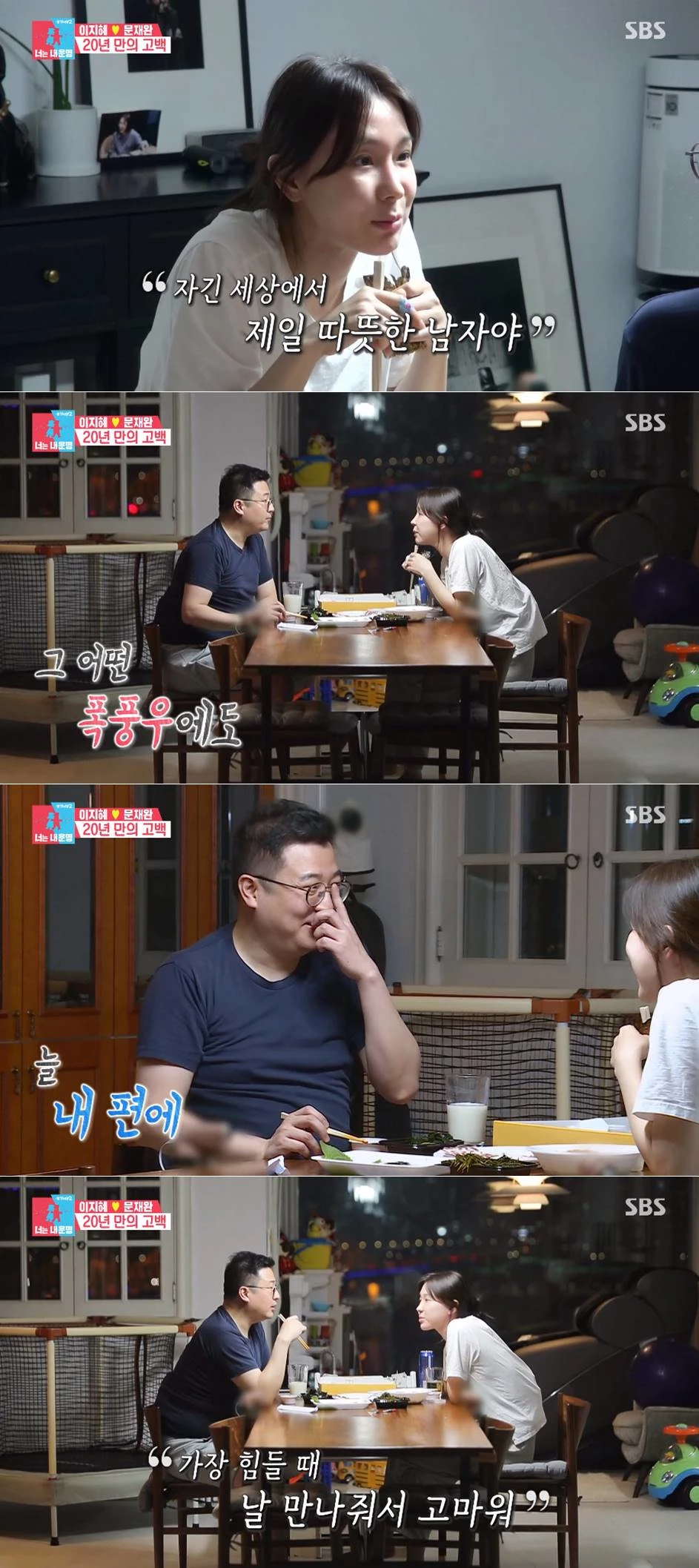 지난 19일 방송된 SBS '동상이몽 시즌2-너는 내 운명'에서는 저녁 식사를 하며 진솔한 이야기를 나누는 이지혜, 문재완 부부의 모습이 그려졌다.