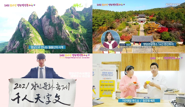 영암군향토축제추진위원회가 주관한 2021 온라인 영암왕인문화축제는‘왕인의 빛, 미래를 밝히다’라는 주제로 2개 부문, 17종의 온라인 프로그램으로 진행되었다.
