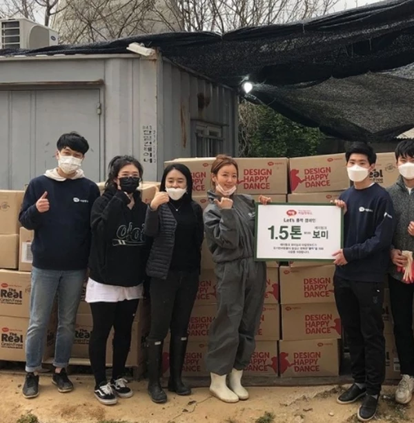 보미는 사료 1.5톤을 기부했다. 그는 유기견 산책과 강아지 사료 급여, 견사 청소까지 깨끗하게 도우며 봉사했다.