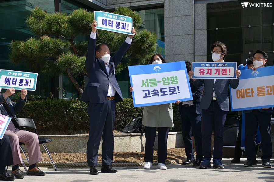 정 군수는 "예타통과가 확정된 오늘 오전부터 지금까지도 그 어떤 말로도 표현하지 못할 벅찬 감동과 떨림, 가슴속에서 휘몰아치는 뭉클한 감정이 주체가 되질 않는다"면서 "오랜 세월, 윗세대로부터 현세대로 이어져온 양평군의 특별한 희생에 대한 목소리가 정부에 닿았으며, 마침내 합당한 보상과 함께 양평이 꿈꾸는 찬란한 미래를 열어갈 초석이 세워지게 되었다"고 언급했다.