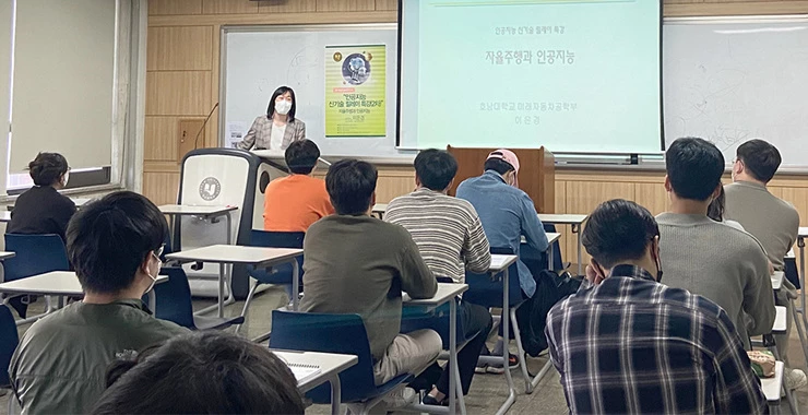 호남대학교 AI빅데이터 연구소(소장 백란)는 5월 3일 오후 미래자동차공학부 이은경 교수를 초청, ‘자율주행과 인공지능’을 주제로 2차 특강을 진행했다. AI융합대학 공과대학 2~3학년을 대상으로 한 이날 특강은 지역사회 구성원들까지 강의 내용을 공유할 수 있도록 대면과 비대면을 병행해 실시됐다.
