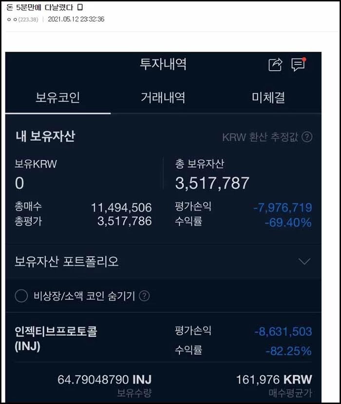 “5000만원어치 코인이 화장실 갔다 온 5분 만에 800만원 됐어요” (인증사진)