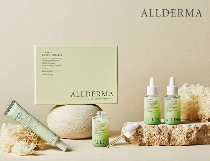 '올더마'가 선보인 제품 가운데 ‘올더마 베라트릭리프팅앰플’은 꽃송이버섯의 유효성분으로 제조사인 코스맥스만의 주름 개선 비고시 주성분과 베라트릭애씨드를 적용해 안티에이징에 효과적인 제품이다.