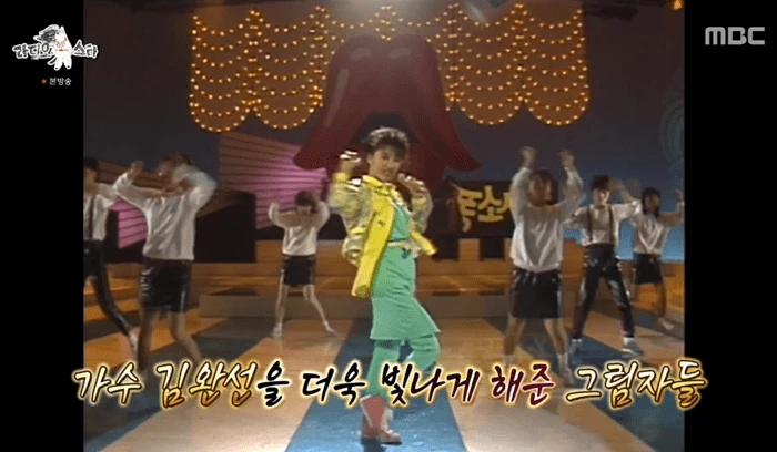 김완선은 "그런데 가장 유명한 댄서분들은 '사랑의 골목길'이라는 노래로 많이 알려졌는데, 저랑 똑같은 옷을 입고 봉에 매달려서 (많이들 기억해주신다)"라면서 "당시 제 표정을 보면 별로 밝은 얼굴이 아니다. 가요 프로가 아닌 코미디 프로였다. 내가 하려고 한 게 아니라 웃기려고 했었다"라고 설명했다.