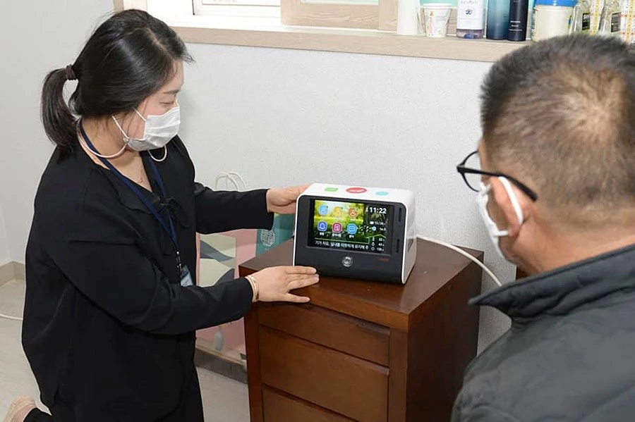독거노인지원서비스로 지급한 인공지능 스피커가 하고 있는 역할입니다.