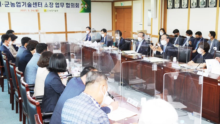 전남도농업기술원 지난 24일 도내 21개 시군농업기술센터소장이 참석한 가운데 농업 현안문제 해결을 위한 2분기 업무협회의를 개최했다.