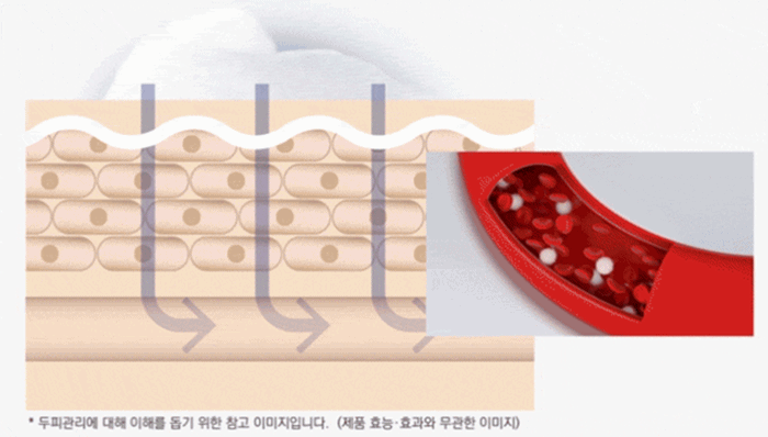 두피에 산소가 공급되면 혈류량이 증대되고 피부재생 및 노폐물 배출 등이 유도된다.